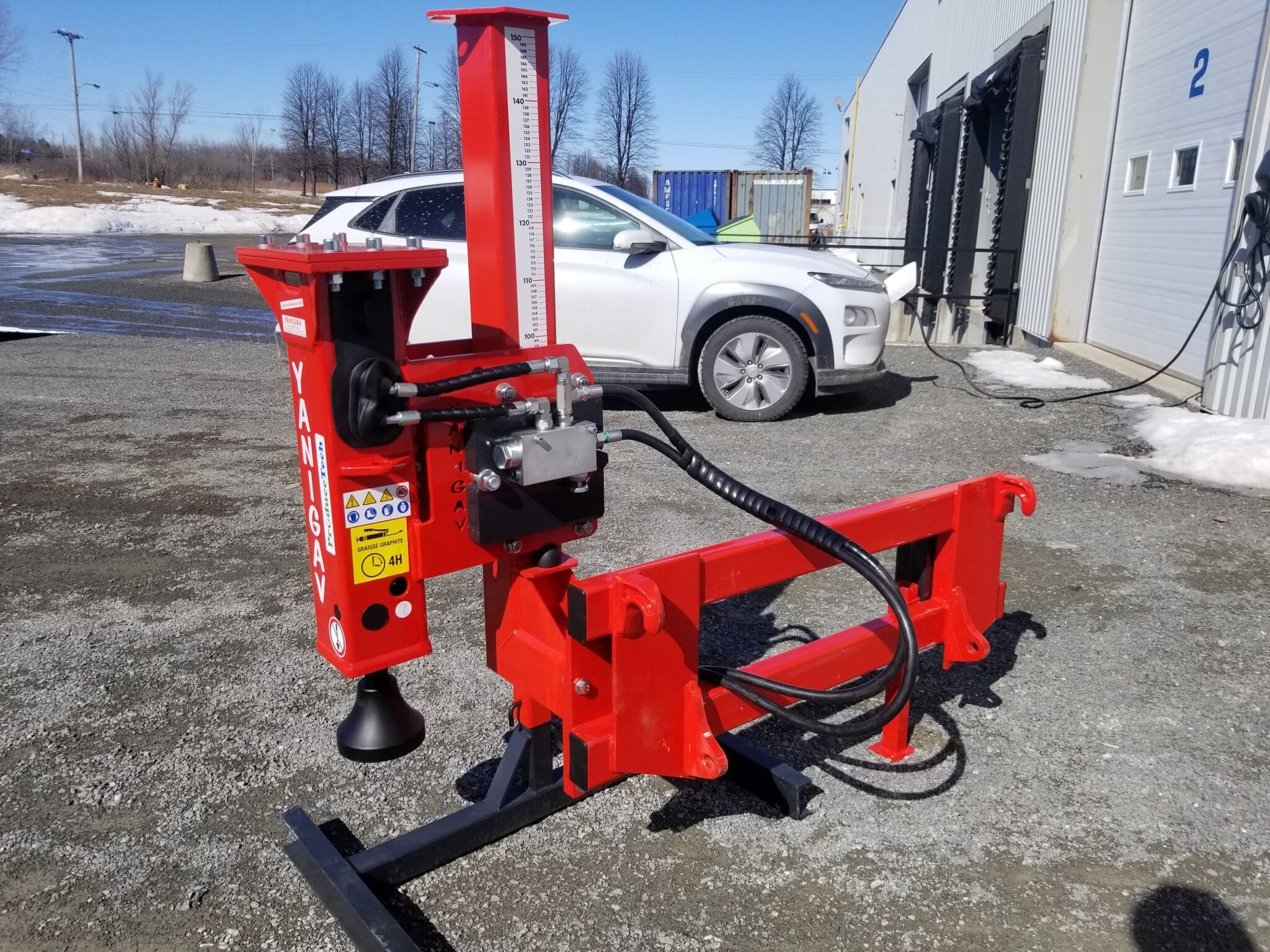 The Yanigav MPEV600-CT hydraulic pile driver is a pile driver for a front loader, with a hydraulic hammer mounted on a sliding pole.