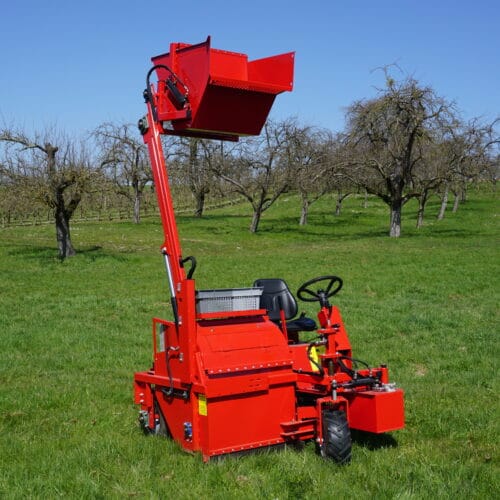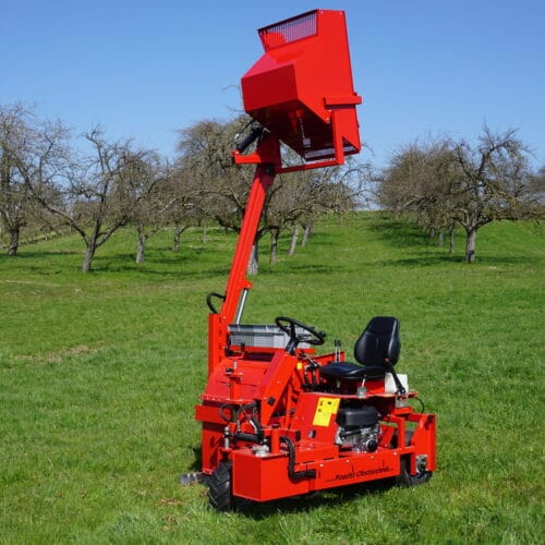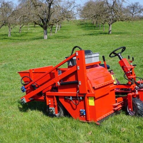 La récolteuse de fruits au sol Feucht OB 70R est une récolteuse automotrice compacte, dotée d’un rotor en caoutchouc qui ramasse les noix et noisettes tombées au sol et les transporte vers une trémie élévatrice.