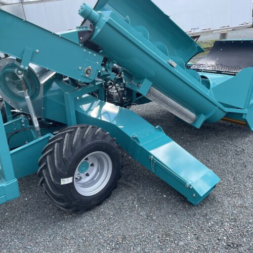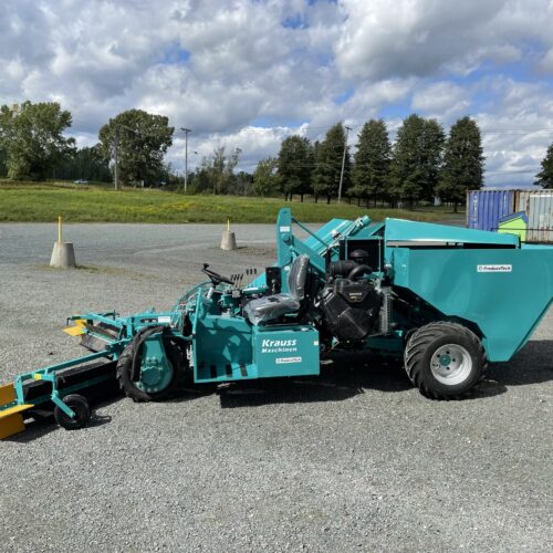 La récolteuse Krauss SF permet de ramasser les pommes, poires et autres fruits tombés au sol. Elle est dotée d’un rotor avec des lames de caoutchouc qui soulève les fruits du sol. Ces derniers sont ensuite acheminés dans la trémie grâce à une vis sans fin.